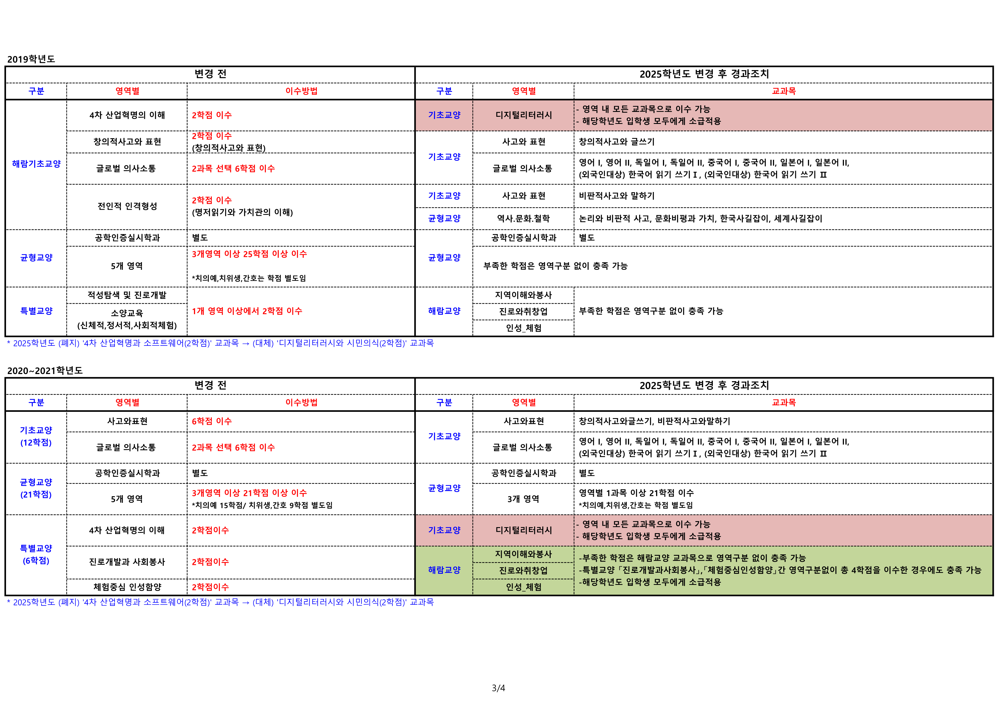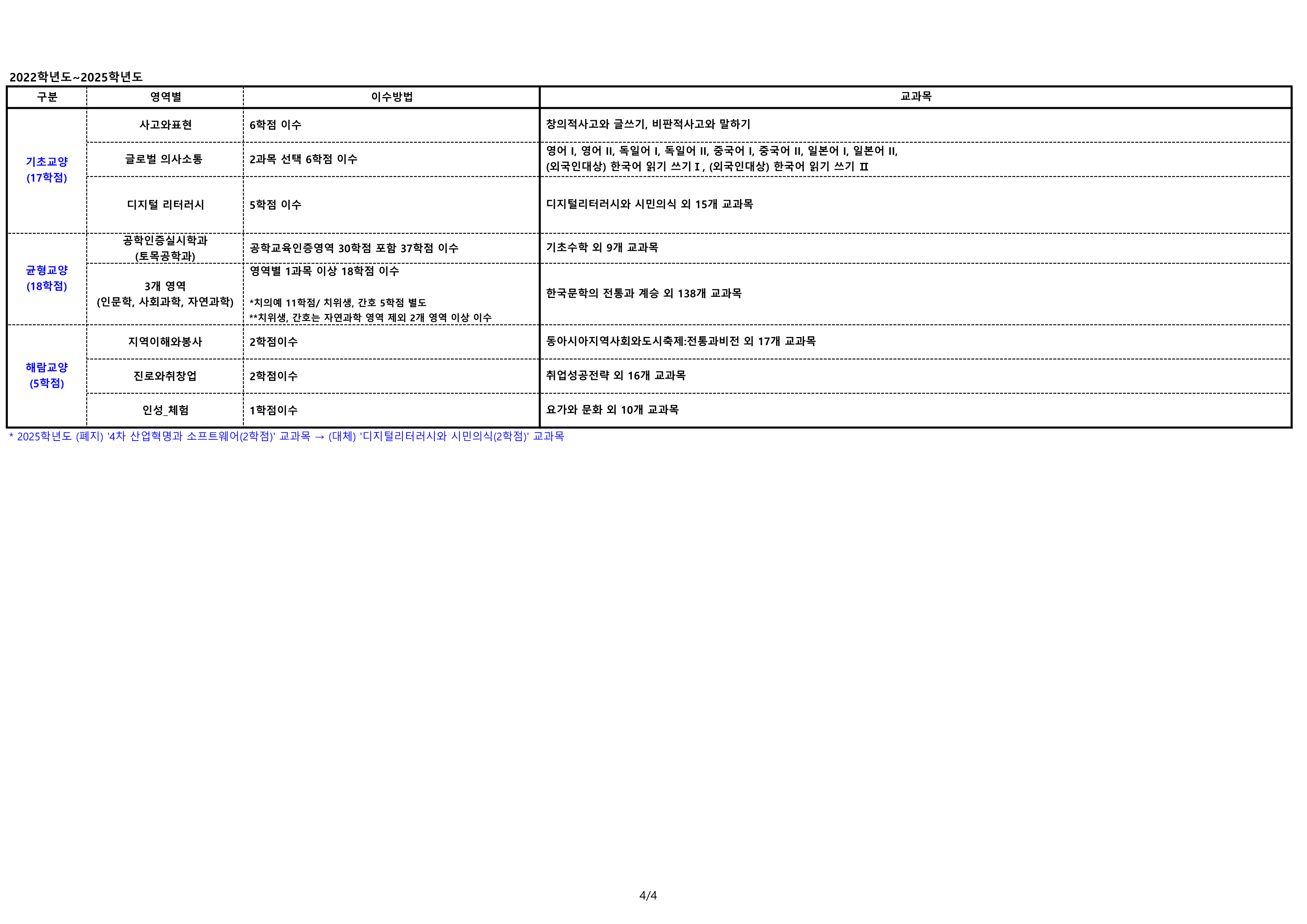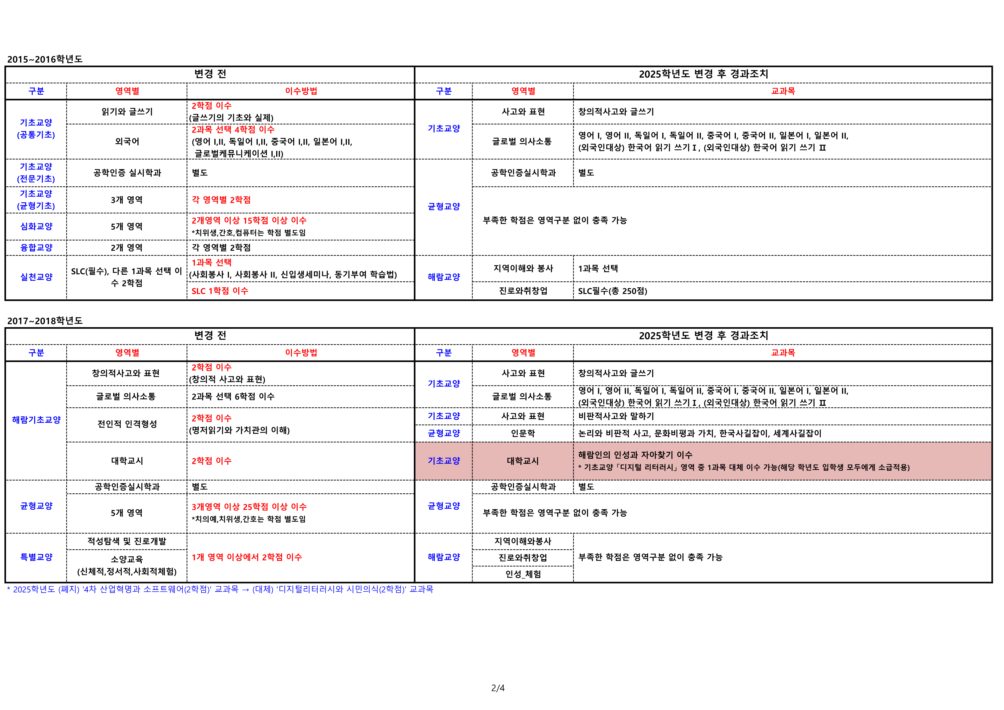2025학년도 교육과정 개편에 따른 교양 경과조치 안내