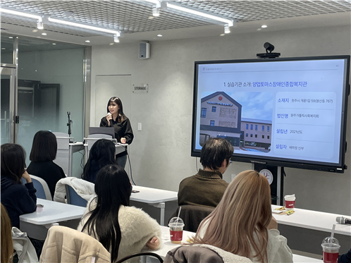2부에서는 관동학원대학교 사회학부 학생들이 사회복지 실습 내용을 발표했으며, 이 과정에서 사회학부 정희성 교수가 동시통역을 맡았다. 이어 우리 대학 사회복지학과 학생들도 현장실습 발표를 진행했고, 동시통역은 이선영 교수가 담당했다.